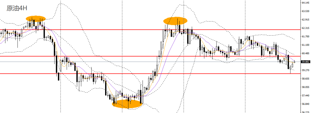 美原油昨日收十字阴线,彻底下破60大关,日线RSI位于50下方,如于60附近承压可继续进空,后市预计仍将下探58.50-59。