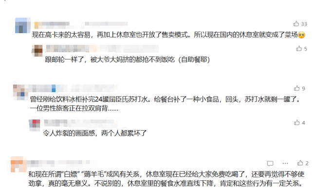 过去两年,国航等航司休息室频频出现“扫货式使用”场景: