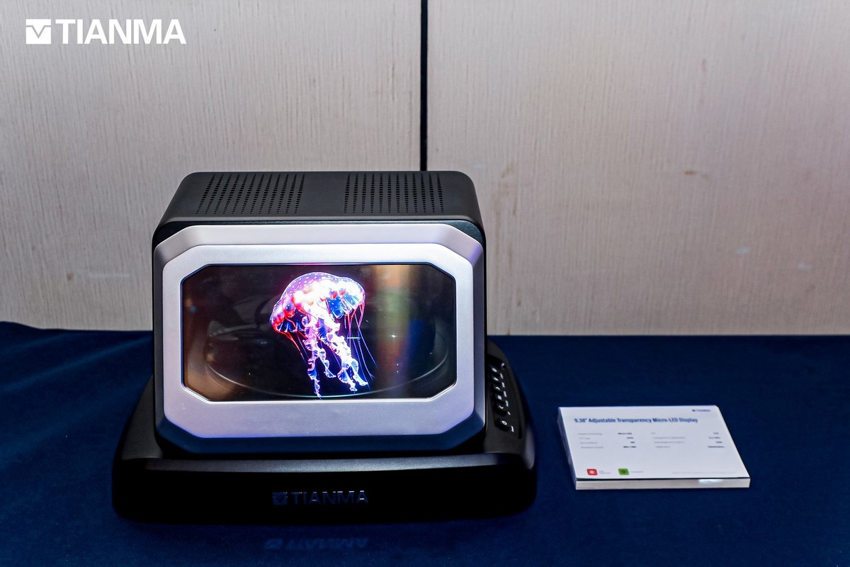 活动现场,天马带来5款Micro-LED重磅展品,呈现高亮、亮度可调、透明低反射、超窄边等技术优势,直观展示了透明显示技术的多元落地形态,以硬核技术诠释透明显示的无限可能。