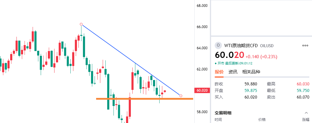 原油反弹在60.4附近空,防守61.2,目标看58.8/58下方