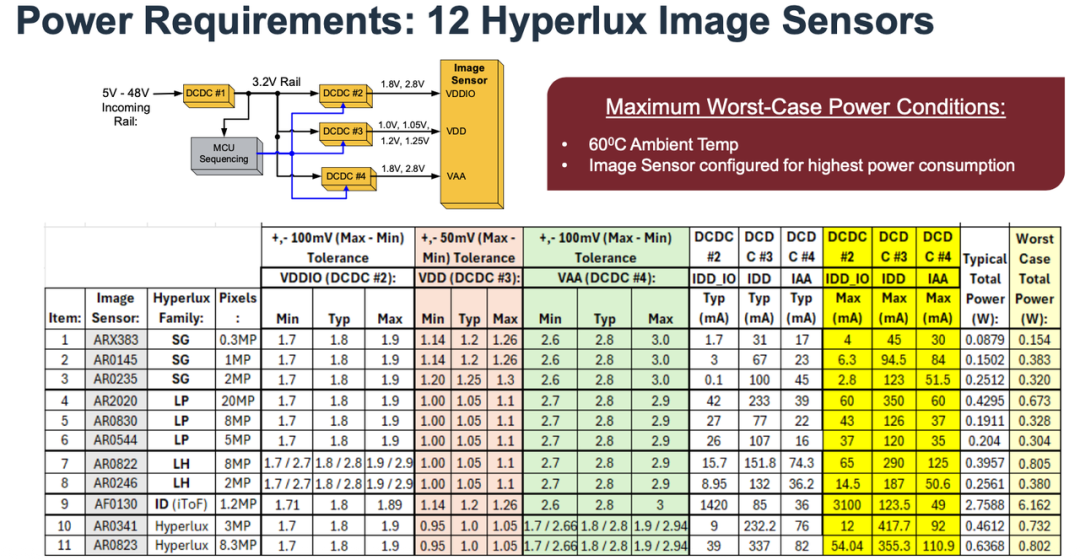 Hyperlux电源树的构建以模块级热与功耗最坏情况为基准,设计环境温度高达60℃,确保在极端负载下仍能保持参数稳定。