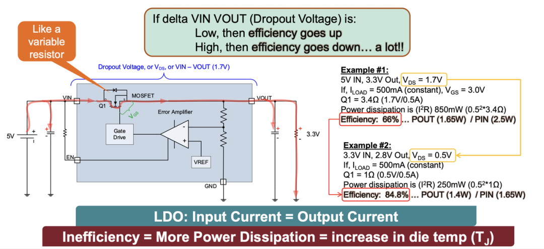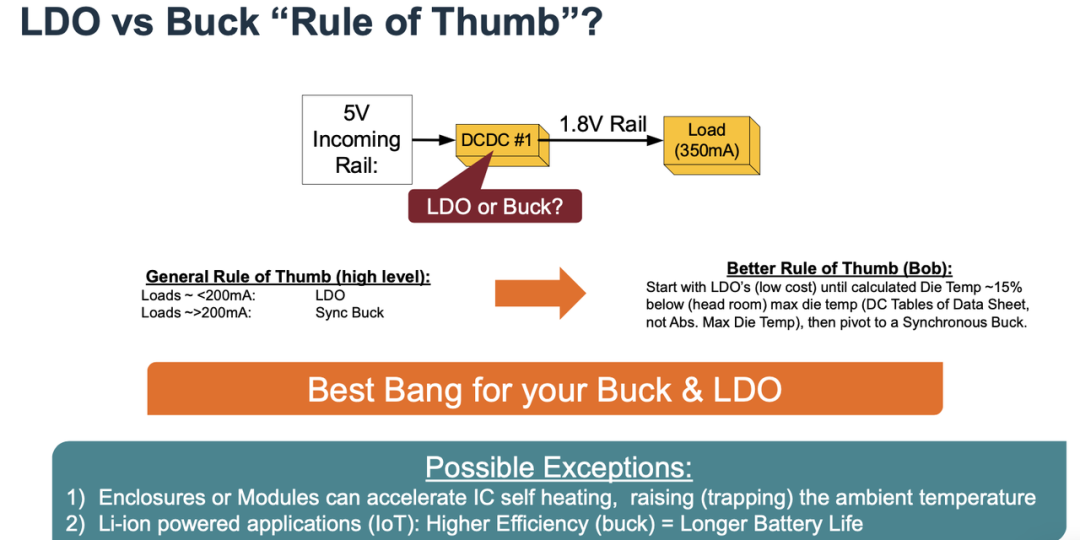 Buck的90%效率意味着仅10%的能量以热形式损失,而LDO在压差较大时效率可能降至36%,相当于近三分之二能量转化为热量。