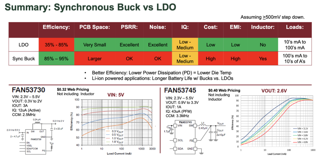 在电源效率方面,Buck与LDO的差距体现出明显的“能量结构分工”。