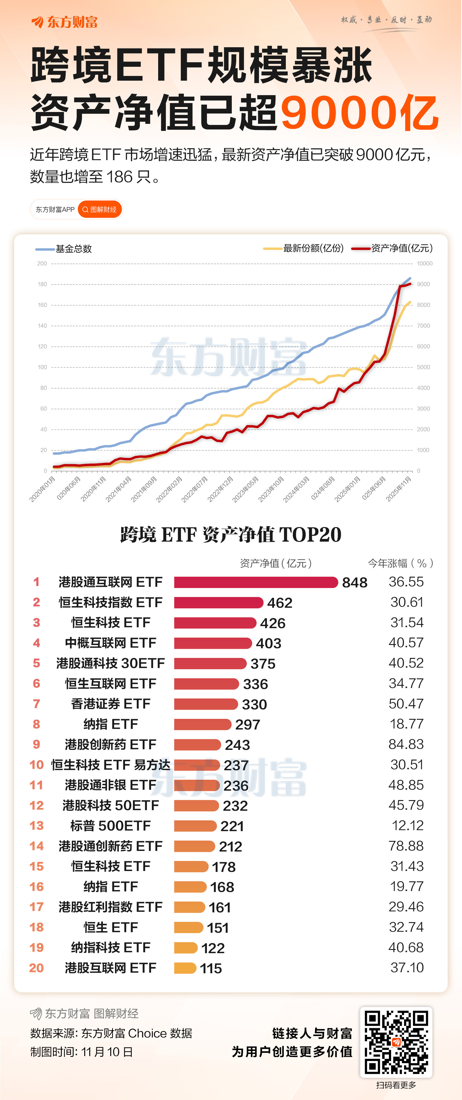 年内暴增113%!跨境ETF规模已超9000亿 港股成最大赢家