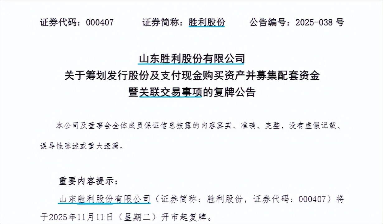 同时,公司股票将于2025年11月11日(星期二)开市起复牌。