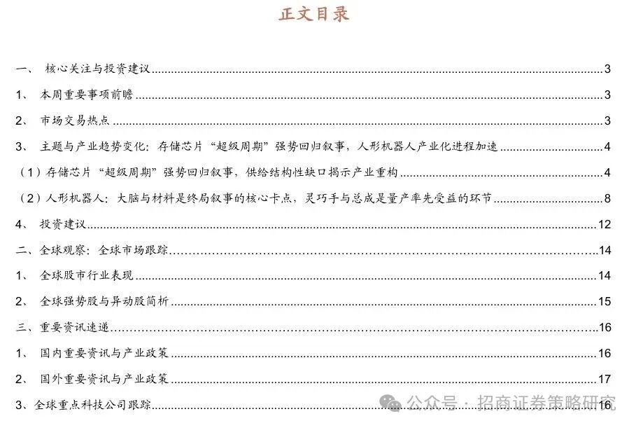 3、 主题与产业趋势变化:存储芯片“超级周期”强势回归叙事,人形机器人产业化进程加速
