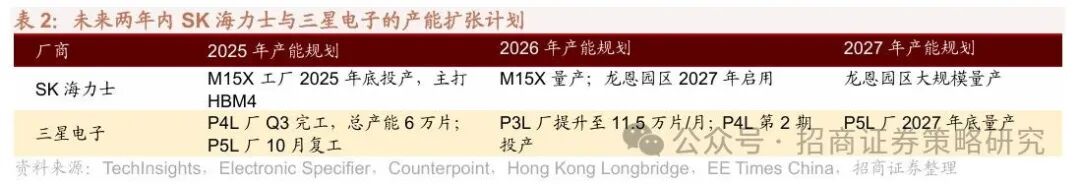 值得关注的是,SK海力士与三星电子的2026年HBM产能已基本被预订完毕。SK海力士2025年全年HBM产能较2024年翻倍,M15X新工厂专门生产面向HBM4的第五代10nm级DRAM芯片。而三星计划2025年下半年量产HBM4,采用4nm逻辑工艺与10nm DRAM制程,目标良率突破80%。