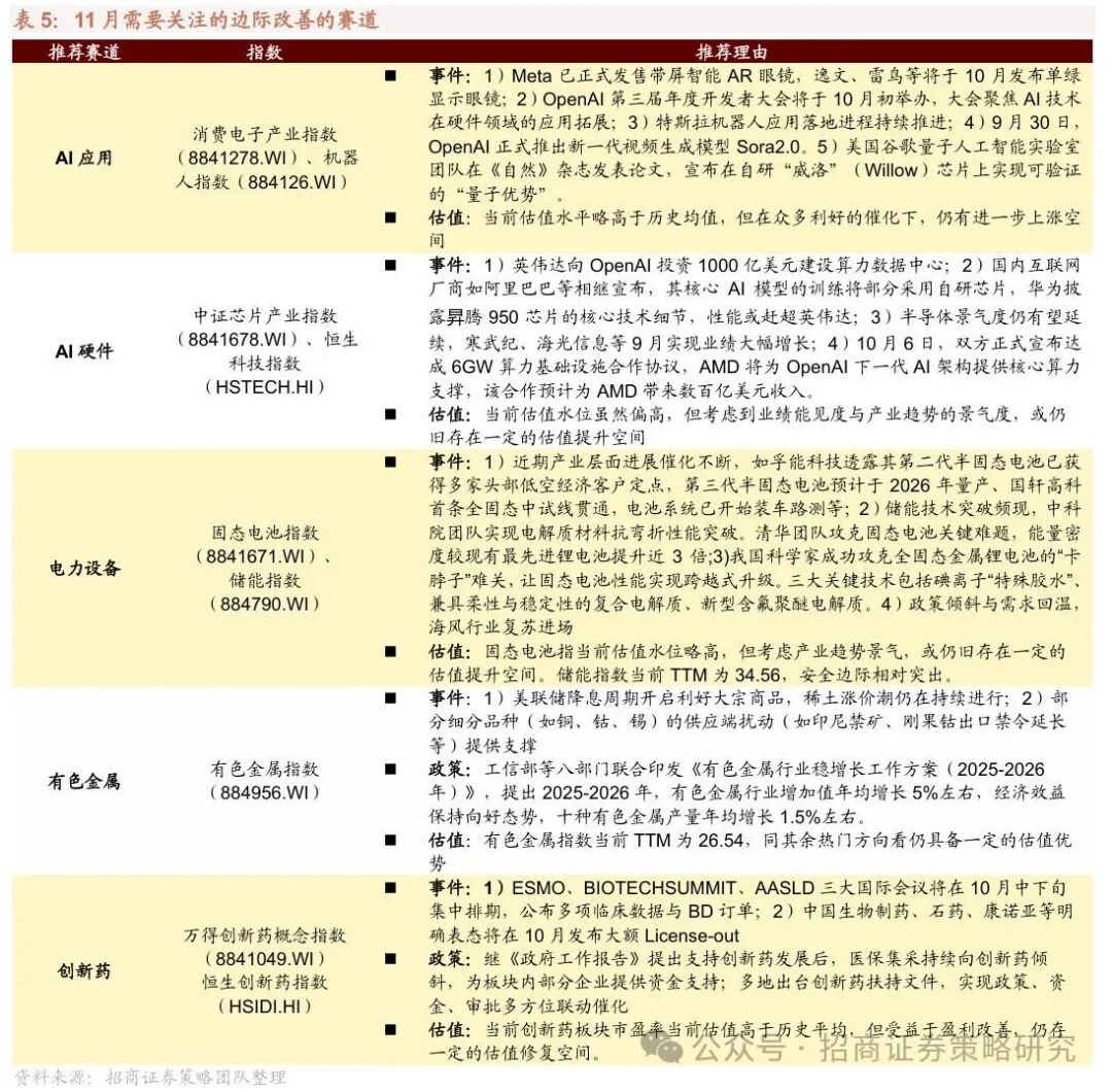 11月重点关注五大具备边际改善的赛道:AI应用、AI硬件、电力设备、有色金属、创新药。