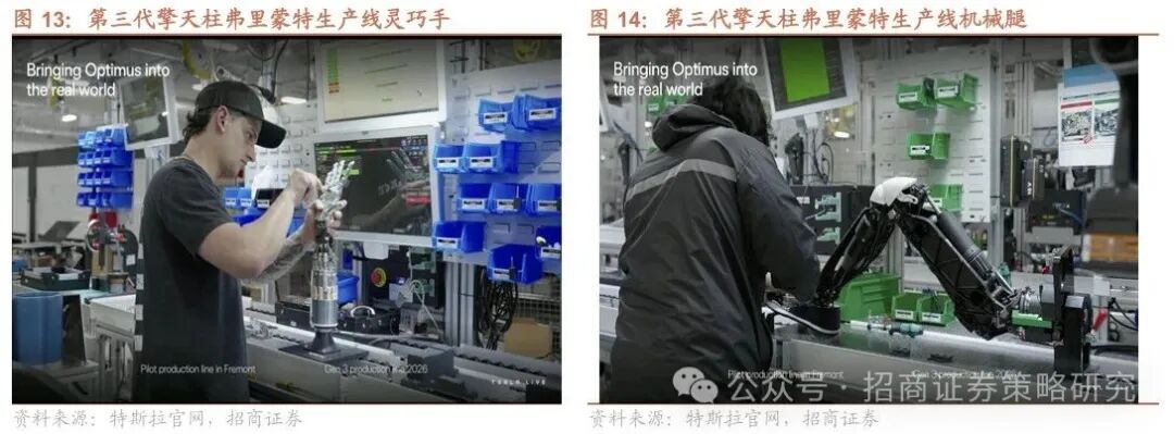 人形机器人方面,马斯克表示,Optimus将是“特斯拉有史以来最大规模的产品”,市场容量可达数十亿台,个人与工业用途比例约为1:3至1:5。目前试生产线已投入运行,特斯拉计划在弗里蒙特工厂建设年产100万台的生产线,并在德州超级工厂建设年产1000万台的产线,未来还计划建设一亿台级别的生产线,可能部署于火星。2026年将启动GEN3大规模量产,2027年、2028年分别推出GEN4与GEN5,每代产品均有重大技术升级,量产后单台成本将控制在2万美元以内。