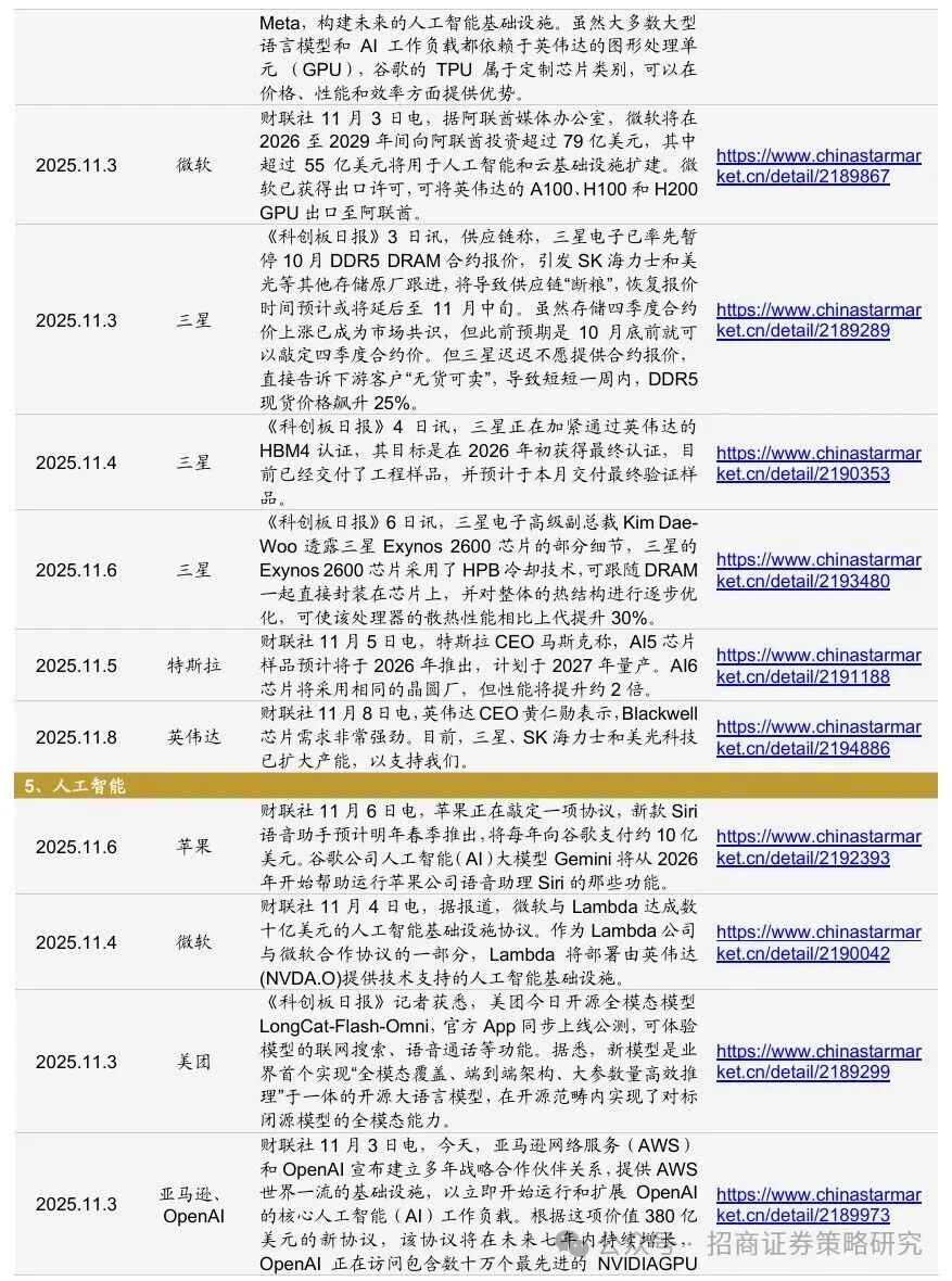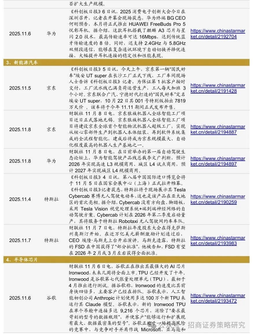 【中长期产业趋势关注及建议】从中长期角度,我们建议以周期为轴,供需为锚。关注新科技周期下,全社会智能化的进展(大模型的持续迭代、算力基础设施与AI生态的完善、AI商业模式的落地、以及AI对消费电子、机器人等赋能),国产替代周期下相关产业链的自主可控(国产大模型、国产AI应用与算力、国产集成电路产业链),以及“双碳”周期下碳中和全产业链的降本增效(光伏、风电、储能、氢能、核电),电动化智能化大趋势下电动智能汽车渗透率增加。