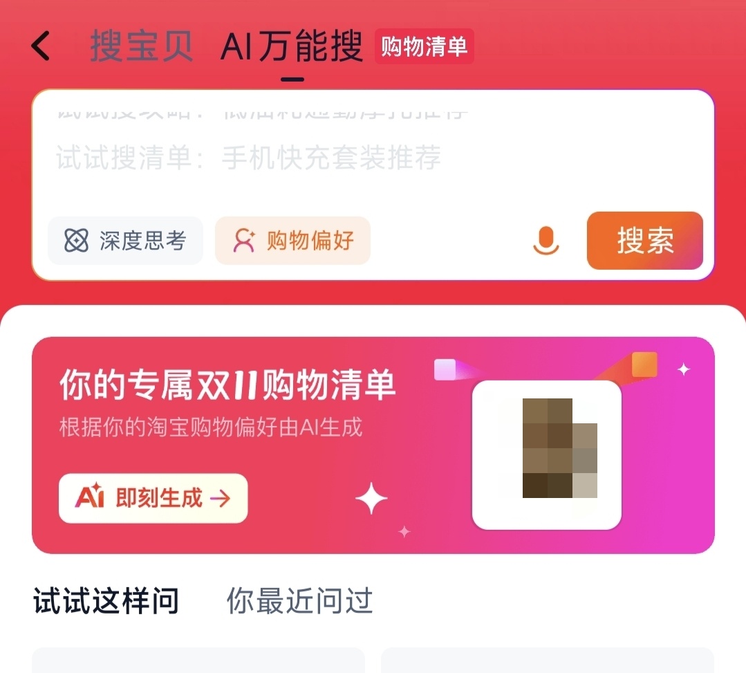 比如,面向用户端,淘宝天猫上线AI万能搜、AI帮我挑、AI试衣、AI清单等工具,帮助消费者决策。
