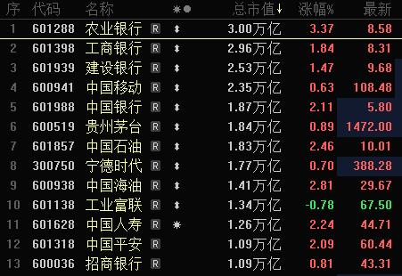 2.75万亿元!农业银行14连阳,A股总市值第一