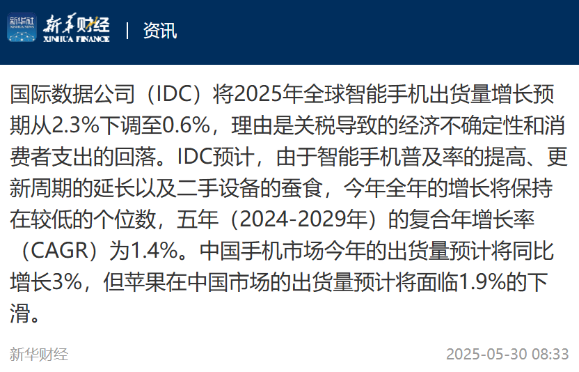 Omdia研究显示,2025年第二季度,全球智能手机市场同比下滑1%,这是该行业连续六个季度以来的首次下跌,而IDC也已将全年增速预期从2.3%下调至0.6%。