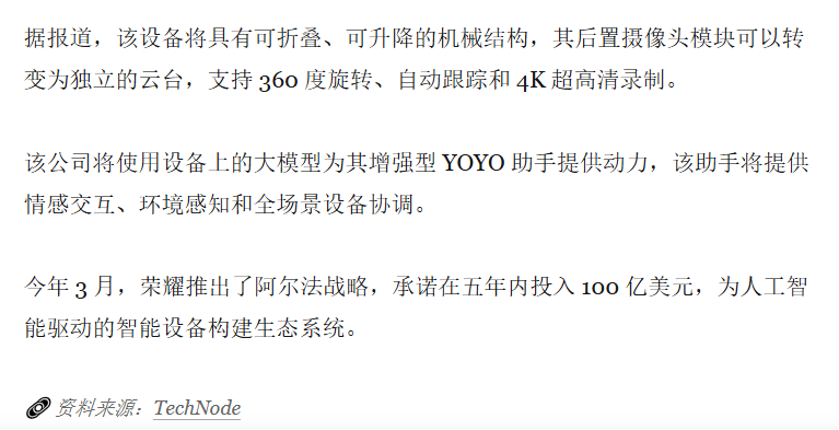 这一背景下,荣耀紧跟行业的脚步,把目光投向了前沿科技领域——AI与智能机器人。