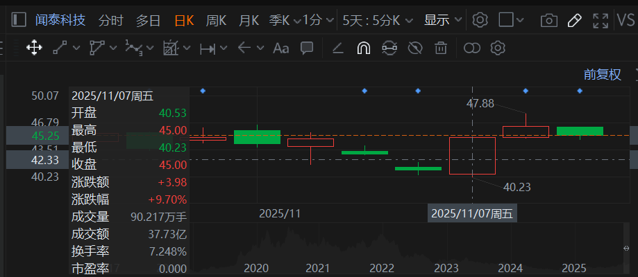 飞荣达、强瑞技术等其余概念股虽收涨,但涨幅在4-5%左右,反应相对平淡,并未出现板块性的集体狂热。被视为“荣耀龙头股”的天音控股、福日电子等却于11月7日出现小幅下跌。