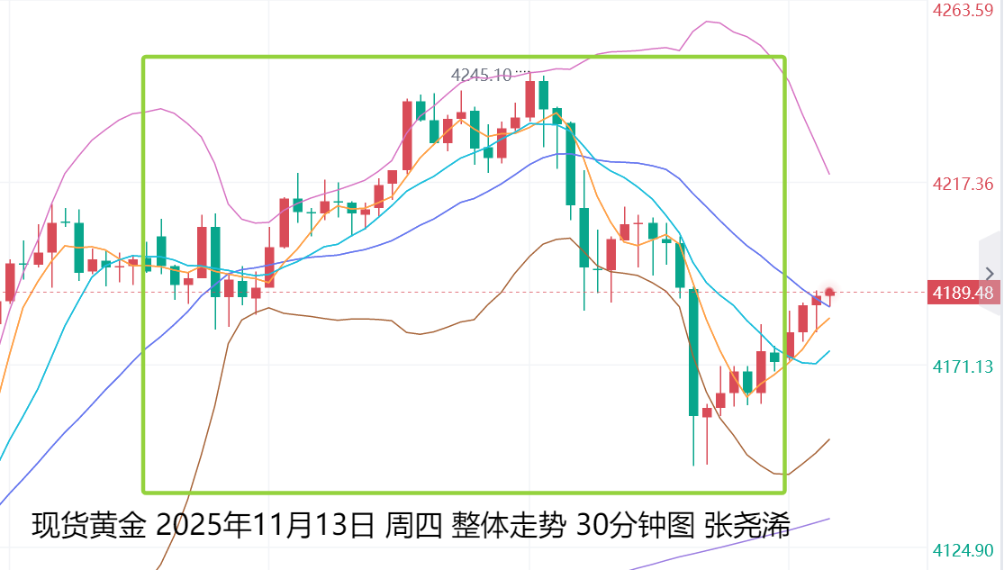 展望今日周五(11月14日):国际黄金开盘延续隔夜尾盘回升之力先行反弹走强,但技术上,仍面临一定阻力,另外,美国政府重开虽化解了短期不确定性,引发买预期卖事实的股市及金市的连锁抛售,并且,美联储对于降息的态度内部分歧、通胀顽固、债市疲软和全球资产轮动共振等等,12月降息概率目前跌至50%,而实际利率又表现上升。这直接打压了金价多头。短期金价将面临震荡或再度回落调整的风险。