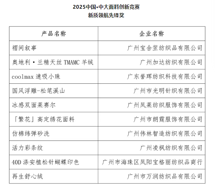 2025中国·中大面料创新竞赛新质领航先锋奖揭晓