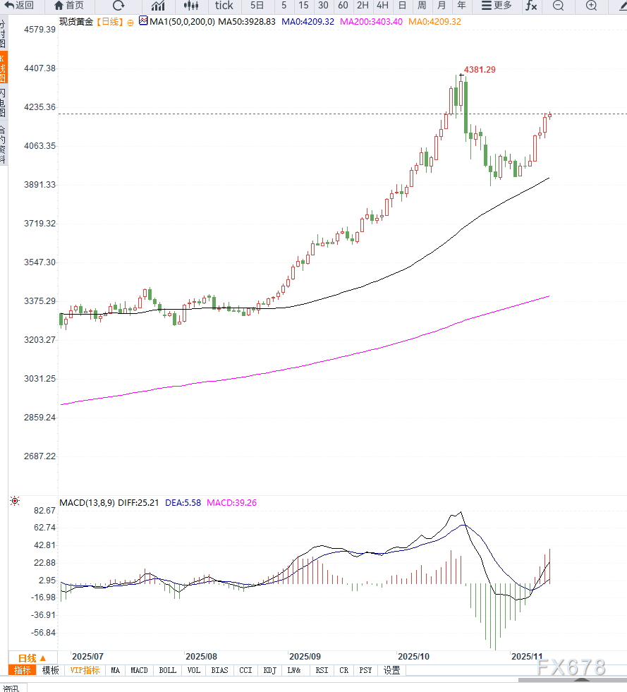 然而,随着美国政府重启和风险偏好回升,短线金价可能出现波动性回调。汇通财经APP讯——周四亚洲交易时段,黄金价格延续涨势,一度升至4,213美元,创三周新高。