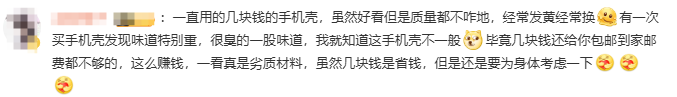 在这个话题下,有网友表示赞同,有过买到劣质手机壳的经历↓↓↓