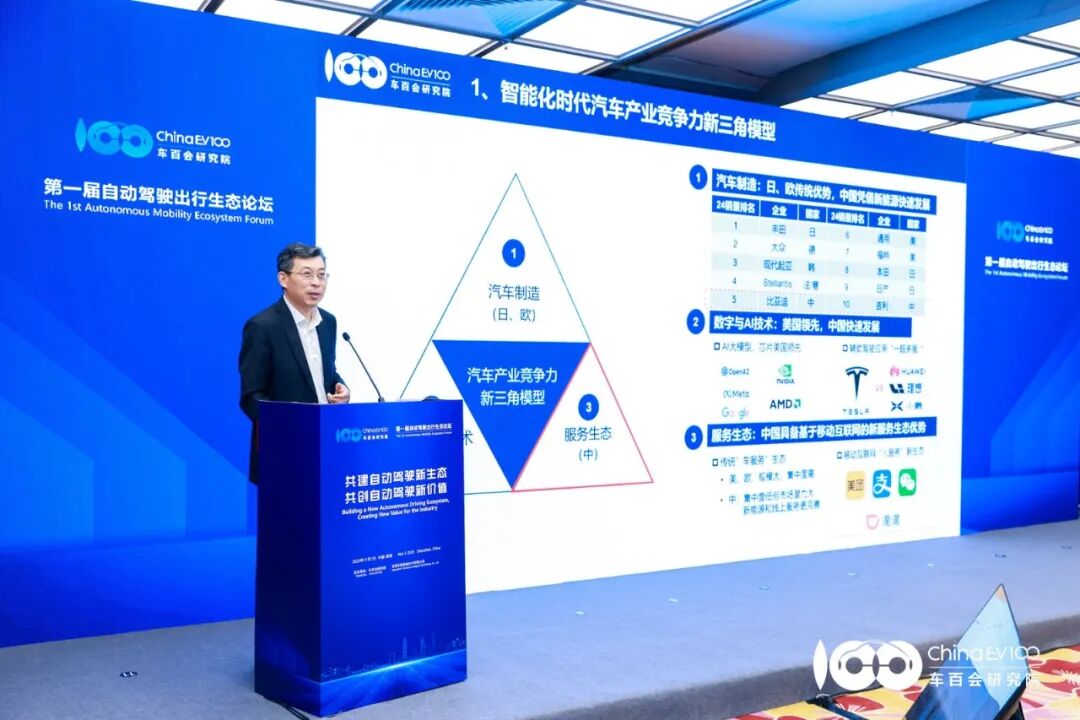 在论坛主题演讲环节,车百会理事长张永伟提出,智能化时代,汽车产业竞争力已形成“新三角模型”。