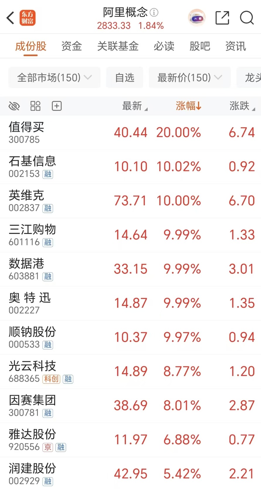 突传重磅!阿里放大招,主力抢筹这些概念股(表格)