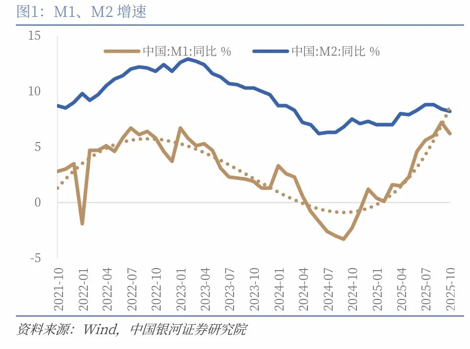货币供应量数据:M1增速转为下行、M2增速继续回落