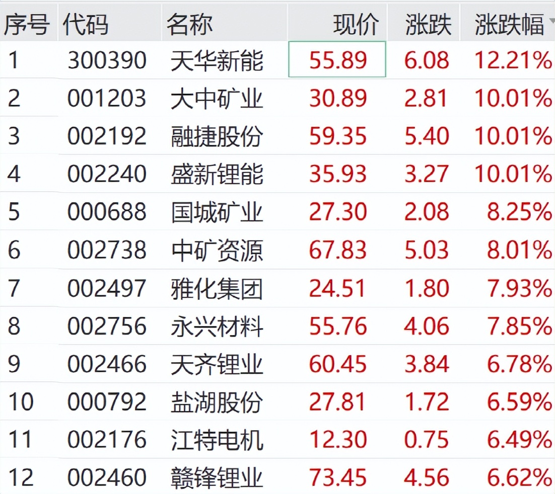 11月17日上午,锂矿板块集体走高,大中矿业、融捷股份、盛新锂能等多股涨停,赣锋锂业、盐湖股份涨超6%