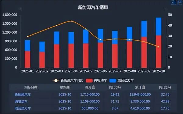 中汽协:10月我国新能源汽车销量首次超总销量50%