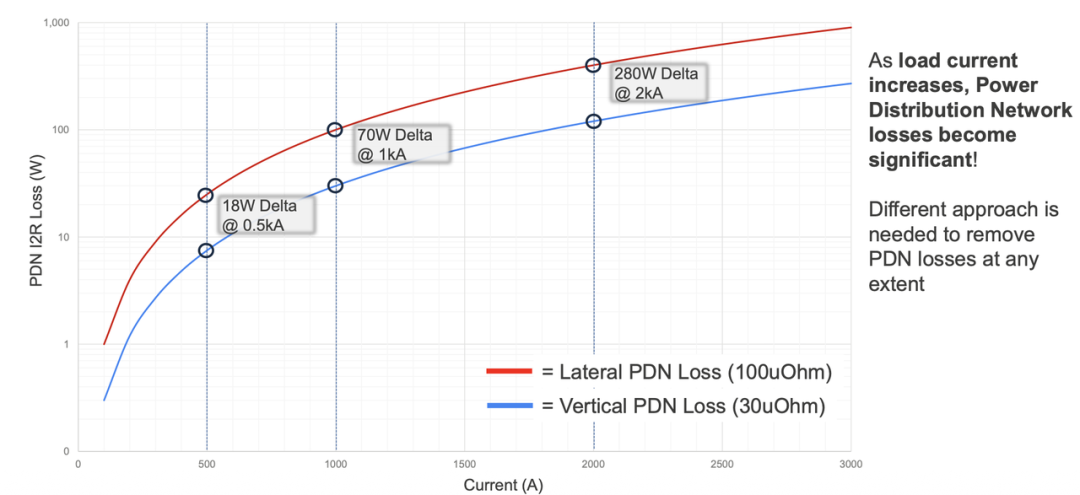 随着AI负载向3kA靠近,传统PDN的不可持续性愈加明显。因此行业逐渐向垂直PDN迁移,通过缩短路径和降低阻抗降低损耗。