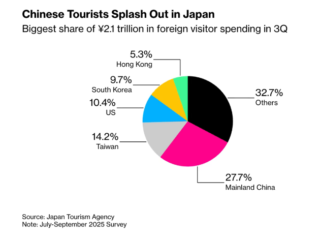 旅游业一直是日本经济低迷时期少有的增长支柱,而中国游客是最重要的组成部分——这就是“为什么这次冲击更痛”的根本原因。