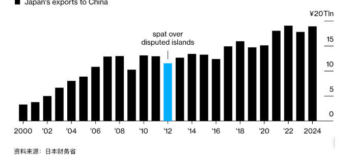 他援引 2012 年钓鱼岛问题的经验:当时赴日中国游客的数量较前一年暴跌约 25%。短短三个多月内,这一变化便使日本当年出口额下降了超过10%,对经济造成直接冲击。