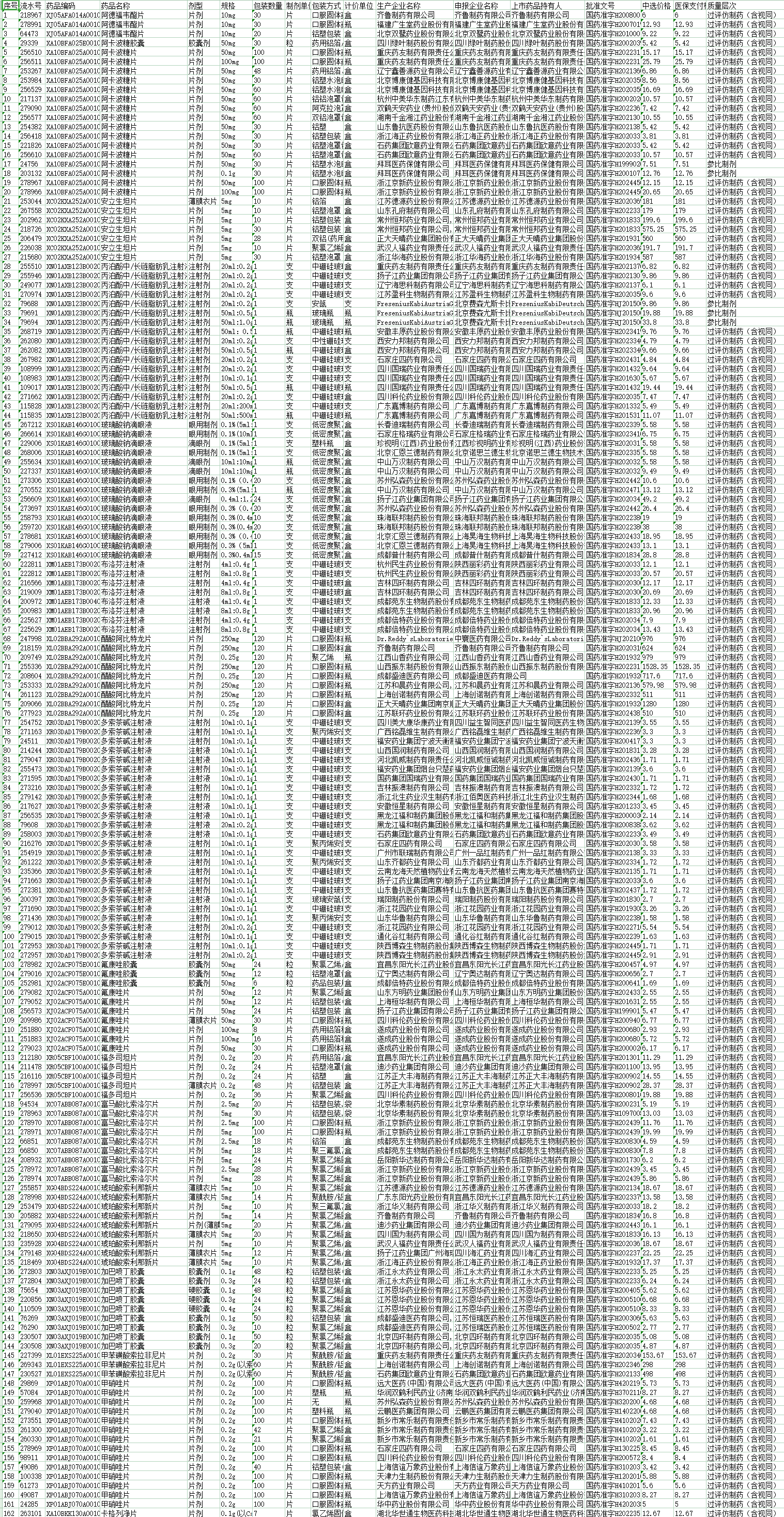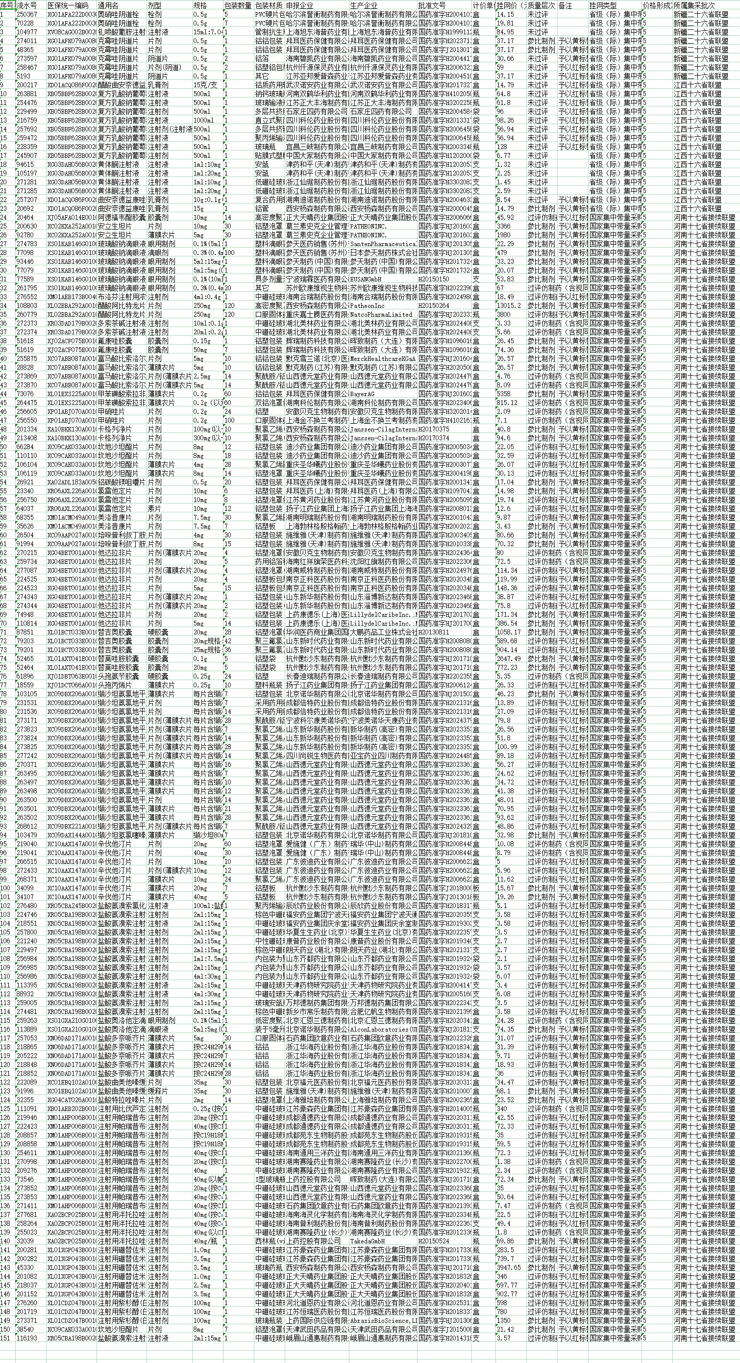 附件:1 河南十七省接续联盟中选药品供应清单.xls