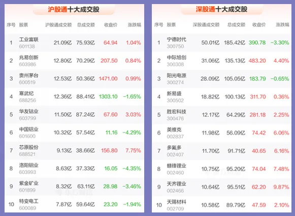 4、北向资金共成交2130.01亿元,占两市总成交额的11.15%——