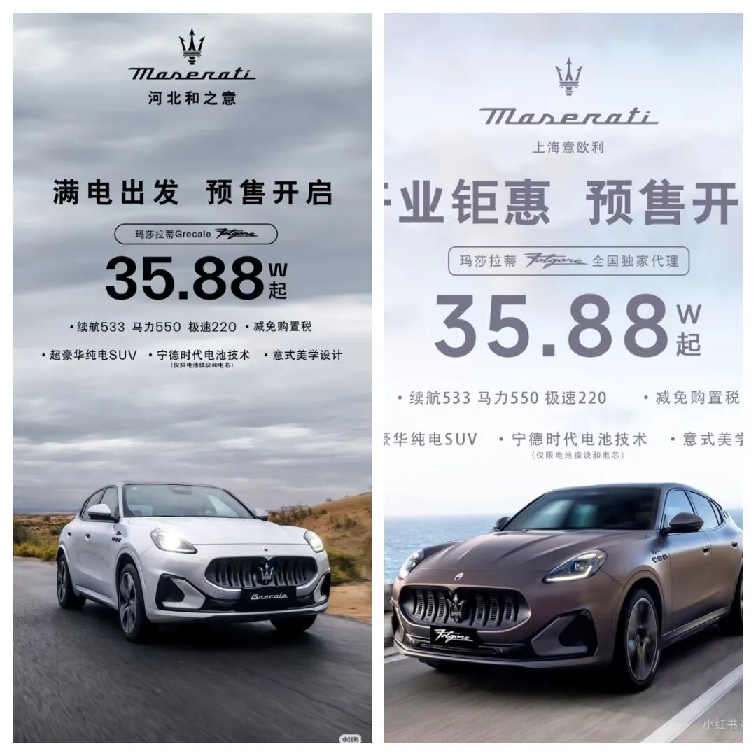 近期,全国多地玛莎拉蒂经销商发促销海报,官方指导价89.88万元的玛莎拉蒂Grecale Folgore,现在只要35.88万元起。