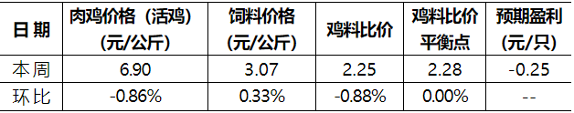 肉鸡方面,本周产品市场需求欠佳,屠宰企业收购积极性不高。未来肉鸡养殖预期亏损0.25元/只。