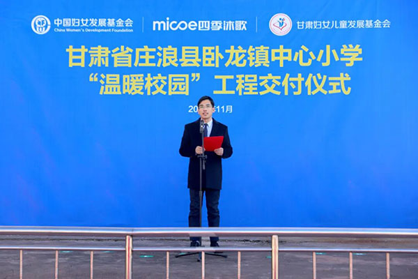 四季沐歌集团品牌总监李文平在讲话中表示,四季沐歌希望通过“温暖校园”工程切实解决边远地区校园所面临最直接、最现实的困难和问题,全力推进教育基础设施改善,为师生的学习、工作和生活条件贡献企业力量,同时也可以引导更多的企业、更多的人关注边远地区的教育事业发展。