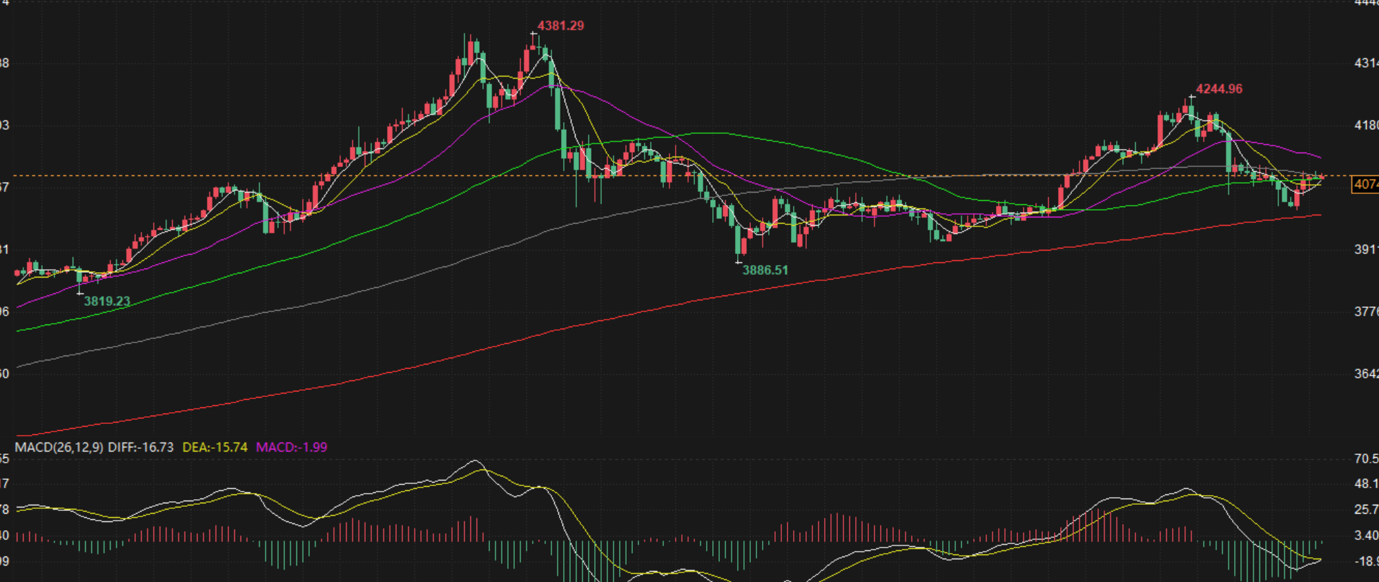 综合各方面的因素,我们得出以下具体的压力位和支撑位。压力位分别为4082、4112以及44140,支撑4050-32-15 这些位置在过往的行情中都曾对价格形成过一定的压制和支撑作用。