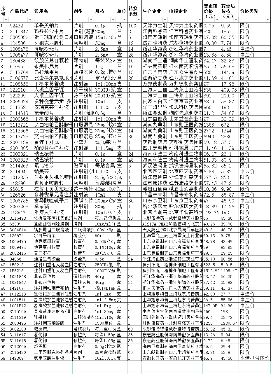 附件:苯妥英钠片等58个调整药品价格信息表.xls 一、药品调整范围
