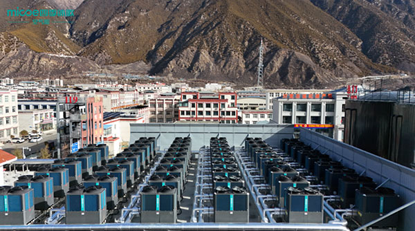 在海拔3400米的西藏林芝工布江达县,四季沐歌也打造了西藏单体最大的空气能热泵集中供暖项目,覆盖学校、医院、政府办公楼等十余个公共建筑,总供暖面积超29万㎡。高寒、低压、强紫外线、昼夜温差大——这些对常规热泵系统堪称“致命”的环境因素,在这里被逐一化解。项目的成功运行,也让高原群众在蓝天白云下享受到了清洁、稳定的温暖。