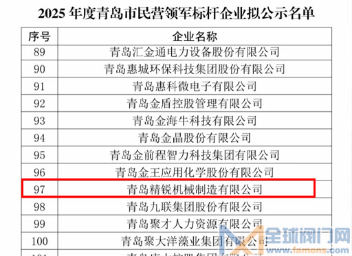 11月20日,随着青岛市民营经济发展局发布的官方公示期截止,青岛精锐机械制造有限公司凭借坚实的综合实力、持续的创新能力和卓越的行业引领作用,正式成功入选 “2025年度青岛市民营领军标杆企业”名单!
