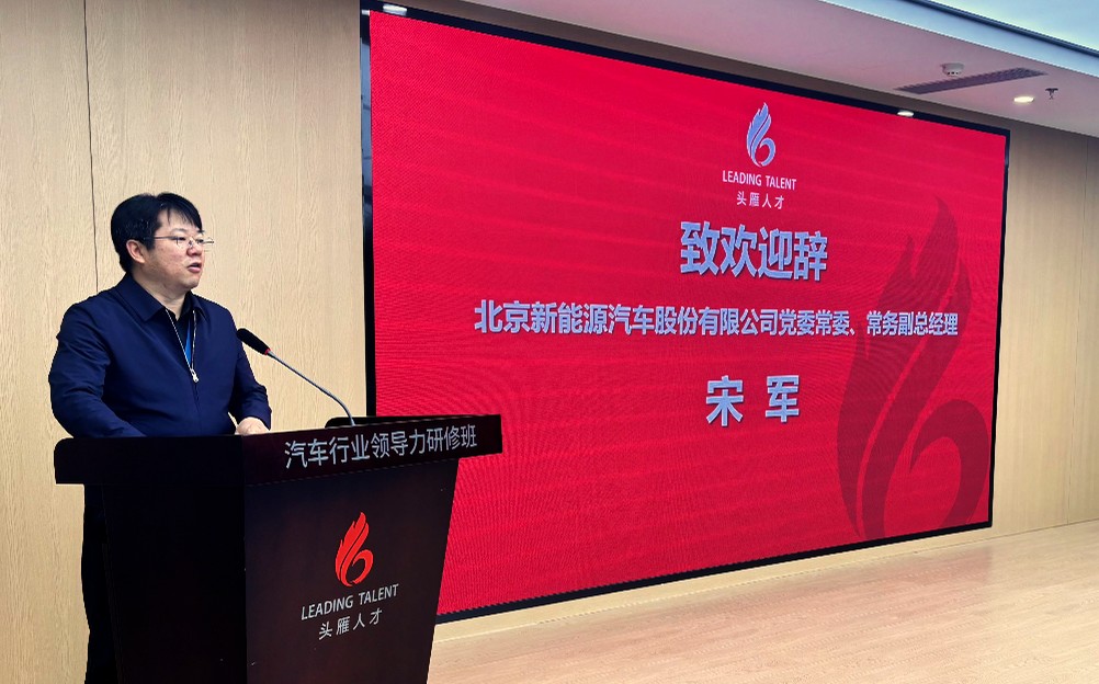 作为本次研修班的开篇启航之地,北京新能源汽车股份有限公司副总经理宋军在致欢迎辞时表示,当前汽车产业正经历着前所未有的深刻变革,中国汽车工业迎来转型升级的关键战略机遇期,而企业竞争的核心本质在于人才竞争。北汽新能源深感荣幸能够参与到这项人才培养工程之中,公司将不遗余力地做好各项服务保障工作,助力学员学有所获、学有所成。同时,期待以“头雁引领方向,群雁展翅翱翔”的蓬勃态势,培育出更多行业领军人才,携手推动中国汽车产业在新赛道上加速驰骋、奋勇前行。