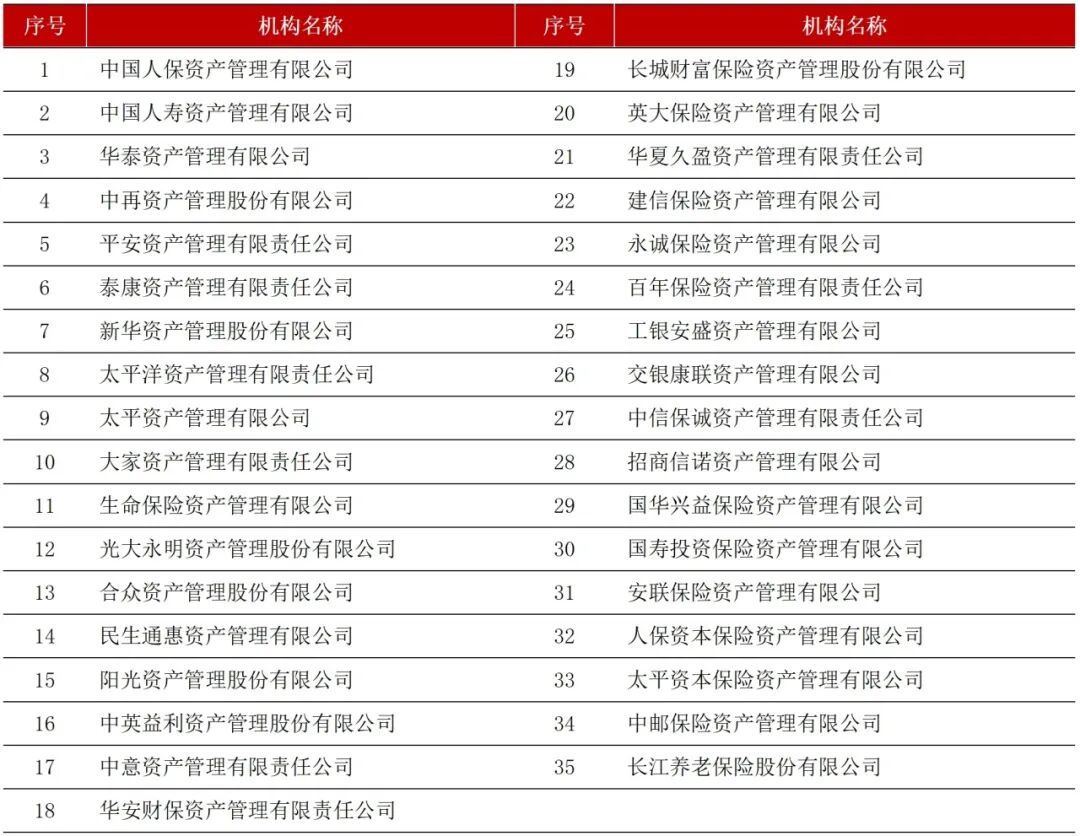 截至2024年末,我国共有保险资管公司35家,其中长江养老保险股份有限公司于2023年变更业务范围,按照保险资管公司管理。
