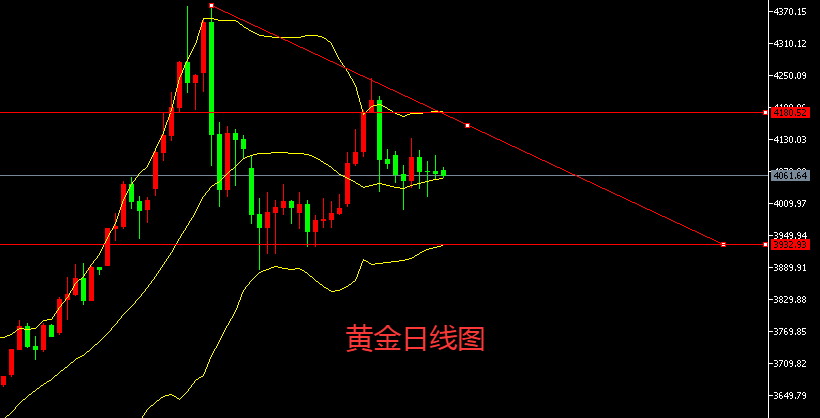 黄金4小时图区间进一步收缩当中,且来回拉锯。短线多空争夺拉扯。强弱延续不定。主格调还是看回落。短线在反复洗盘中蓄势动能。周初预计会继续延续上周的小区在来回拉锯走法。小区间4130-4000来回拉锯,操作上保持高空为主思路,此前的波段性空单4180和4200以及4210和4220和4230及4240全部下移保本损继续持有看波段目标3890-3600。日内配合短线操作。亚盘反弹围绕4090-4100附近短空防守4120目标4030减仓破位再适当下看。