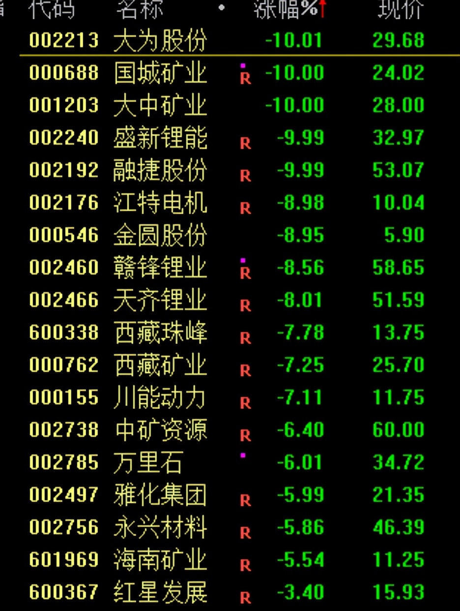 下跌方面,锂矿股延续调整,融捷股份、盛新锂能等再度跌停。高盛将赣锋锂业H股评级从“中性”下调至“卖出”,目标价为32港元,理由是锂现货价格面临下行风险,因下游市场短期反馈欠佳以及补库存增速放缓。
