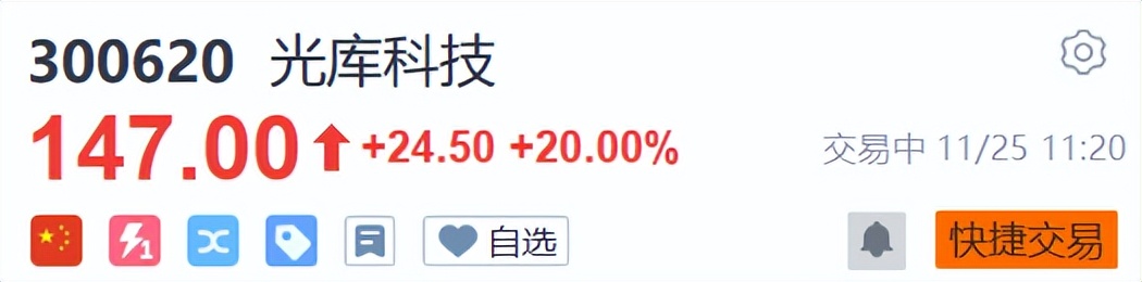 其中,截止发稿,德科立、光库科技收获20CM涨停,腾景科技涨超13%,太辰光涨超11%,赛微电子、英唐智控、中际旭创、天孚通信、恒为科技、光迅科技等纷纷跟涨。