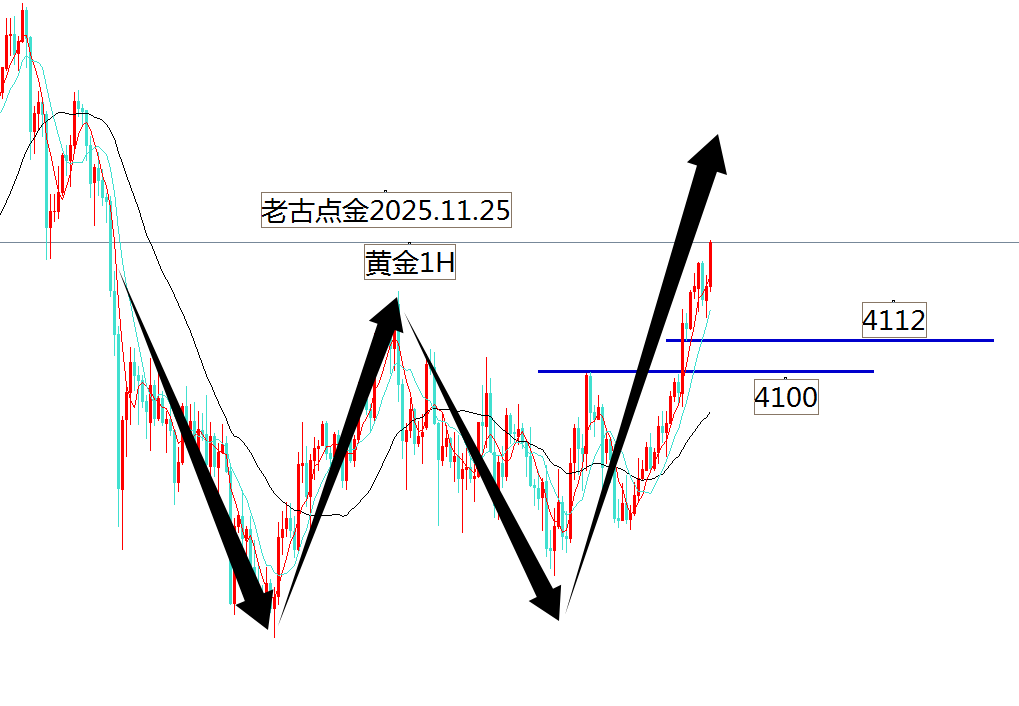 昨天的黄金探底后强势拉升,多头直接破了多个压制位置,目前看来昨天的看震荡跌的思路是错误的,还好布局了两次空单多吃肉,市场就是这样它永远是对的,它才是最好的老师,你需要的跟随它,而不是去对抗它,黄金昨天晚上破了4087后基本就说明短线的强势了,早盘还直接破了周线我们分析的压力,多头崛起了,今天的黄金思路毋庸置疑的继续看跟随它看涨,不猜测顶回踩是干多的机会,形态显示4100已经是4小时的支撑,今天我们将依托4100上面看多,形态显示4100和4087不破都可以坚持看多的思路对待,日线也是大阳光头光脚,今天预估还是有继续拉升的需要,