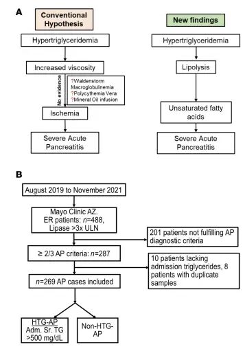 本研究证实循环甘油三酯脂解产生的不饱和NEFAs加重HTG-AP,脂酶抑制可改善结局,为机制与治疗提供双重证据。