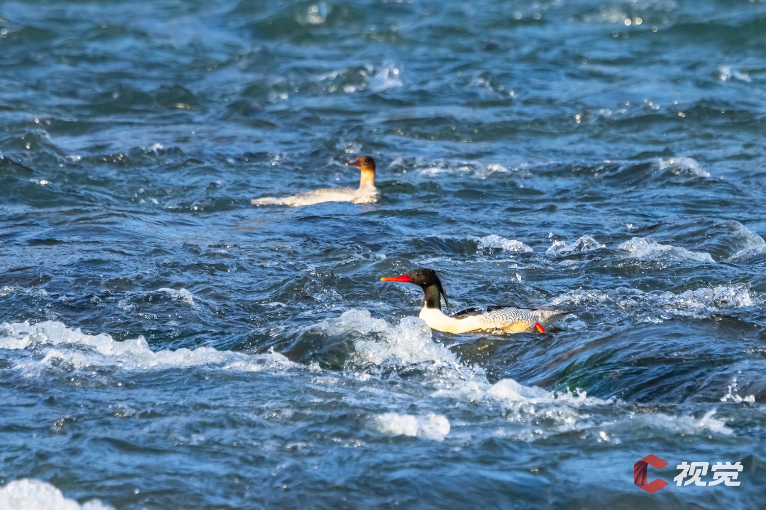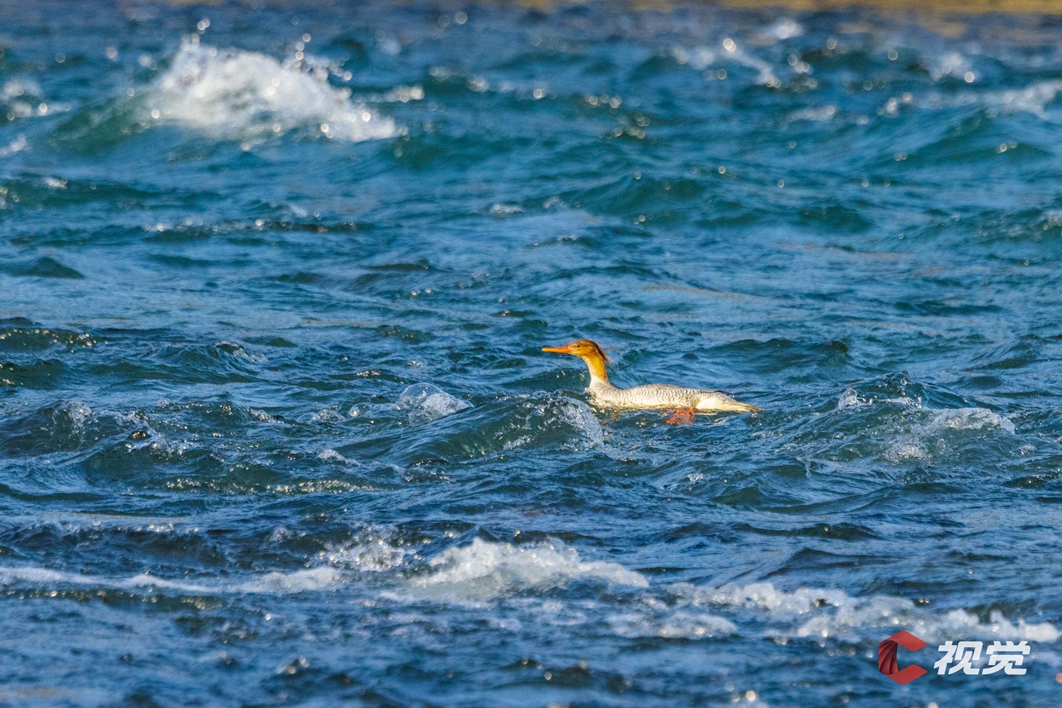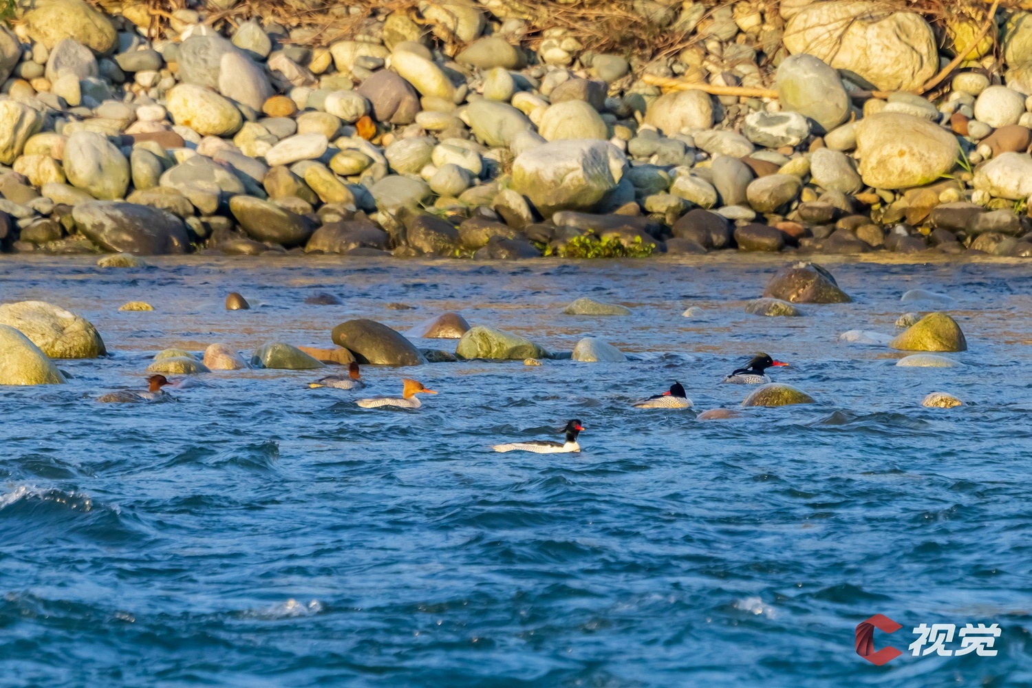 11月27日 ,初冬时节,中华秋沙鸭如约迁徙至都江堰外江河段越冬,这一珍稀鸟类已连续5年飞抵岷江流域该河段。它们时而水中嬉戏,时而觅食鱼虾,成为一道美丽的风景线。