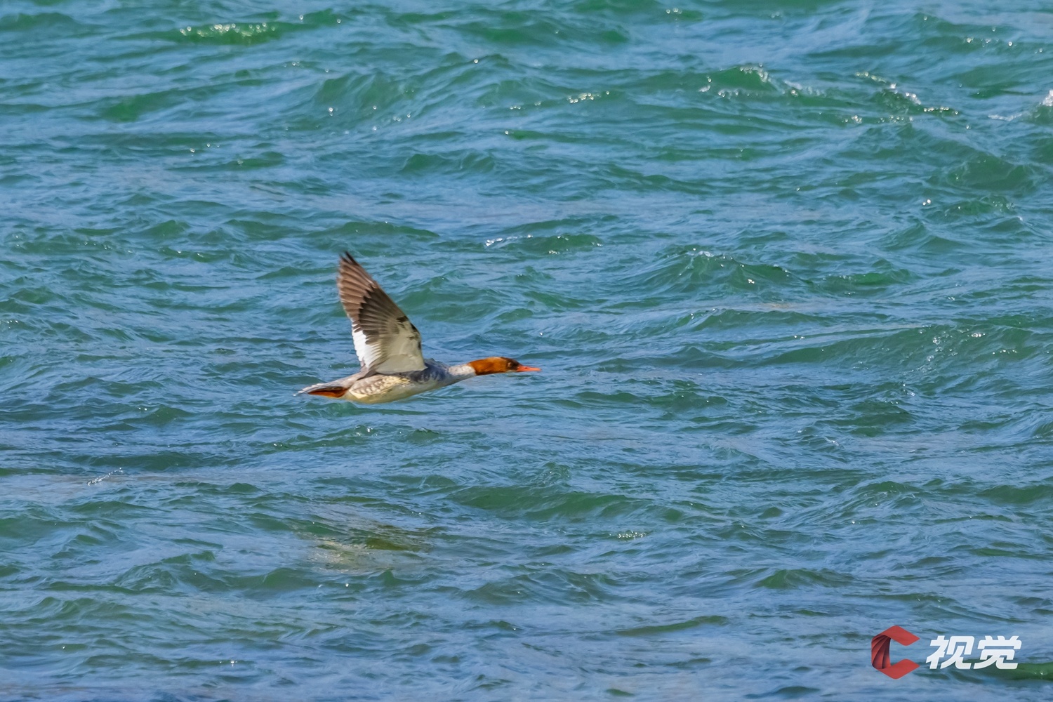飞抵都江堰外江河段越冬的中华秋沙鸭
