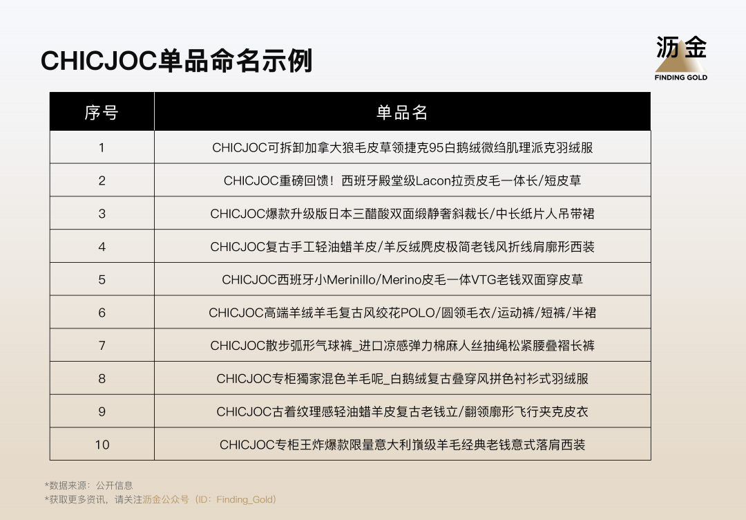 CHICJOC给出了一个清晰且可验证的商业模型。
